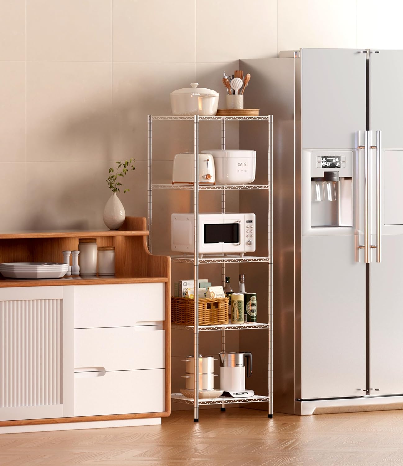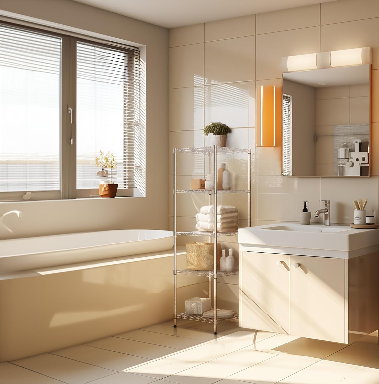Constructed with thicken steel tube, this metal shelving unit is designed to withstand heavy loads and daily use. The chrome finish not only adds a sleek and modern look to any space but also provides protection against corrosion and rust, ensuring long-lasting durability.